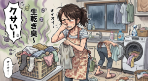 仮に洗濯物をそのまま放置して、湿気の多い雨の日などであればどうなりますか?