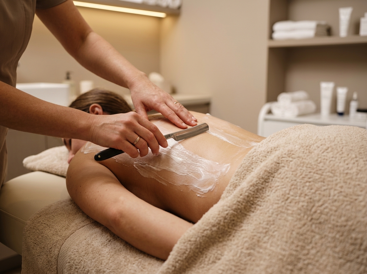 結婚式前のブライダルシェービングは、顔だけでなくうなじや背中まで丁寧に整えます。産毛を処理することで肌のトーンが明るくなり、ウェディングドレスやメイクの仕上がりが一段上がります。
